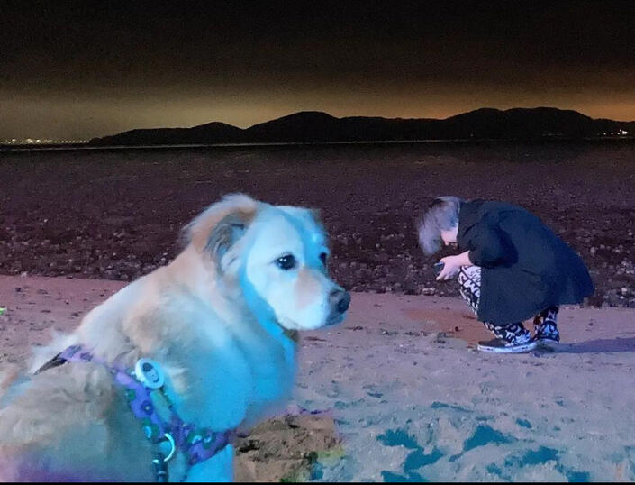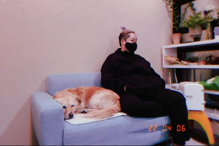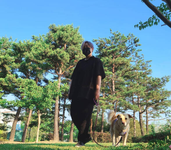 Sam and her older sister live together with her dog Beige who was previously her fathers dog, but due to him falling ill Sam and her older sister started taking care of Beige. Sadly later around 2022 Sam's father passed away, and her apartment burnt down. A news site reported on the happening without Sam's consent, to which she showed disappointment on twitter but told her fans that she would be alright, she said that she recovered some records from the wreckage and that life goes on. Beige often hangs out with a fellow dog friend named Poppy/빠삐.